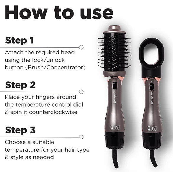2. BRUSH HEAD: Brush head make straightening, curling, and volumizing a breeze.