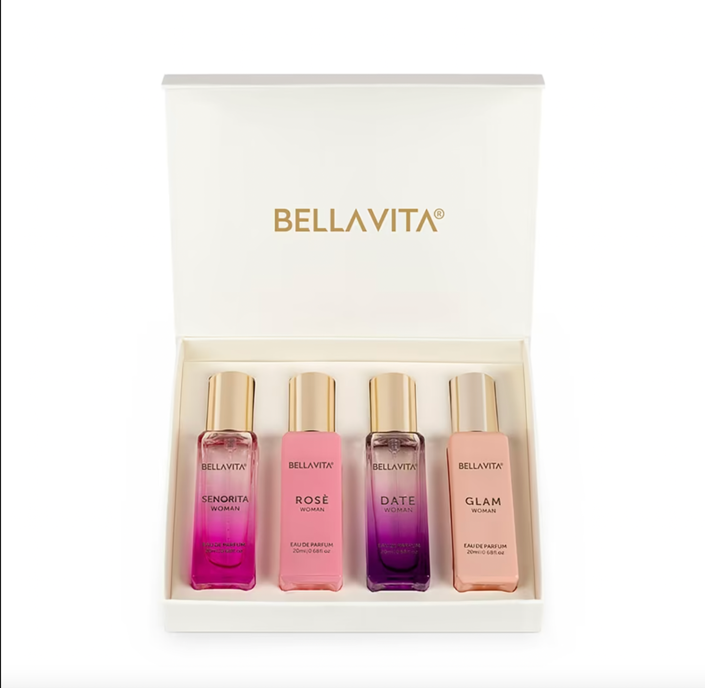 Bella Vita Luxury offers a curated gift set of our best selling perfumes - For Her. A set of 4 miniatures, arousing your olfactive experience right from fruity, floral through to Oriental Woody and sweet Oud, for all moods. A compilation of Date Woman, Glam, Rose & Senorita woman ; why compromise when you can have all 4, easy to pop in your handbag at all times!